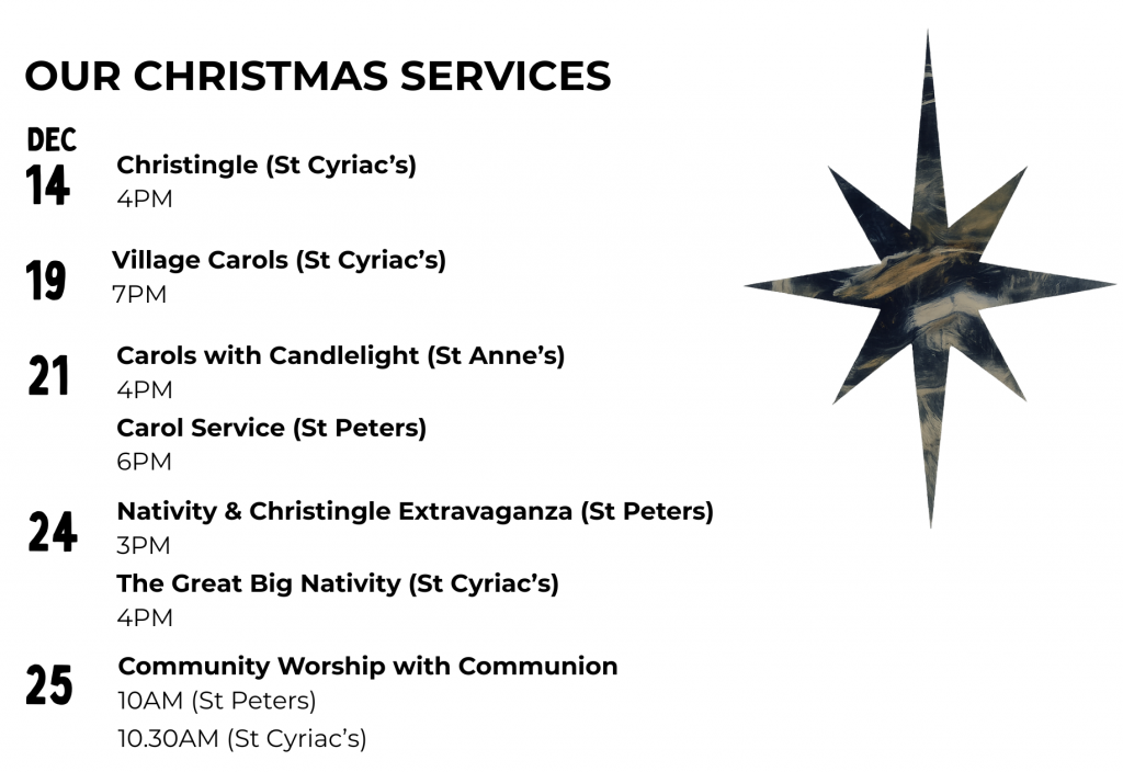 We meet in St Cyriac’s most Sunday’s at 10:30am. There are also morning services at St Anne’s at 8:30am see our newsletters for details of which Sundays.